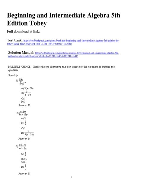 Pdf Download Beginning & Intermediate Algebra [PDF] Download PDF